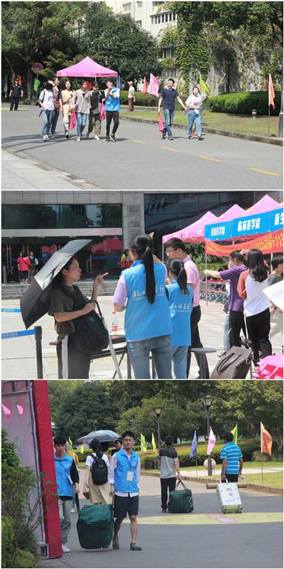 迎新期间,新生们受到了志愿者们热情周到的服务。为了新生能够快速顺利地报到,我校创新志愿服务模式,为新生提供“一对一” 的报到服务。同时,我校在临近校区的地铁四号线杨家墩站提供接站和校车接送服务。除此之外,为了更好地让新生适应大学新环境,高质量完成报到各项事宜,学校志愿者在新生密集区设立咨询台解疑答惑,同时随时随地发放新生报到须知以及校园地图,帮助新生搬运行李,解答新生的各种疑问,并根据新生的个性化需求介绍各种学校相关日常生活事宜以及学校周边服务等,让新生感到杭医春风化雨般的温暖。