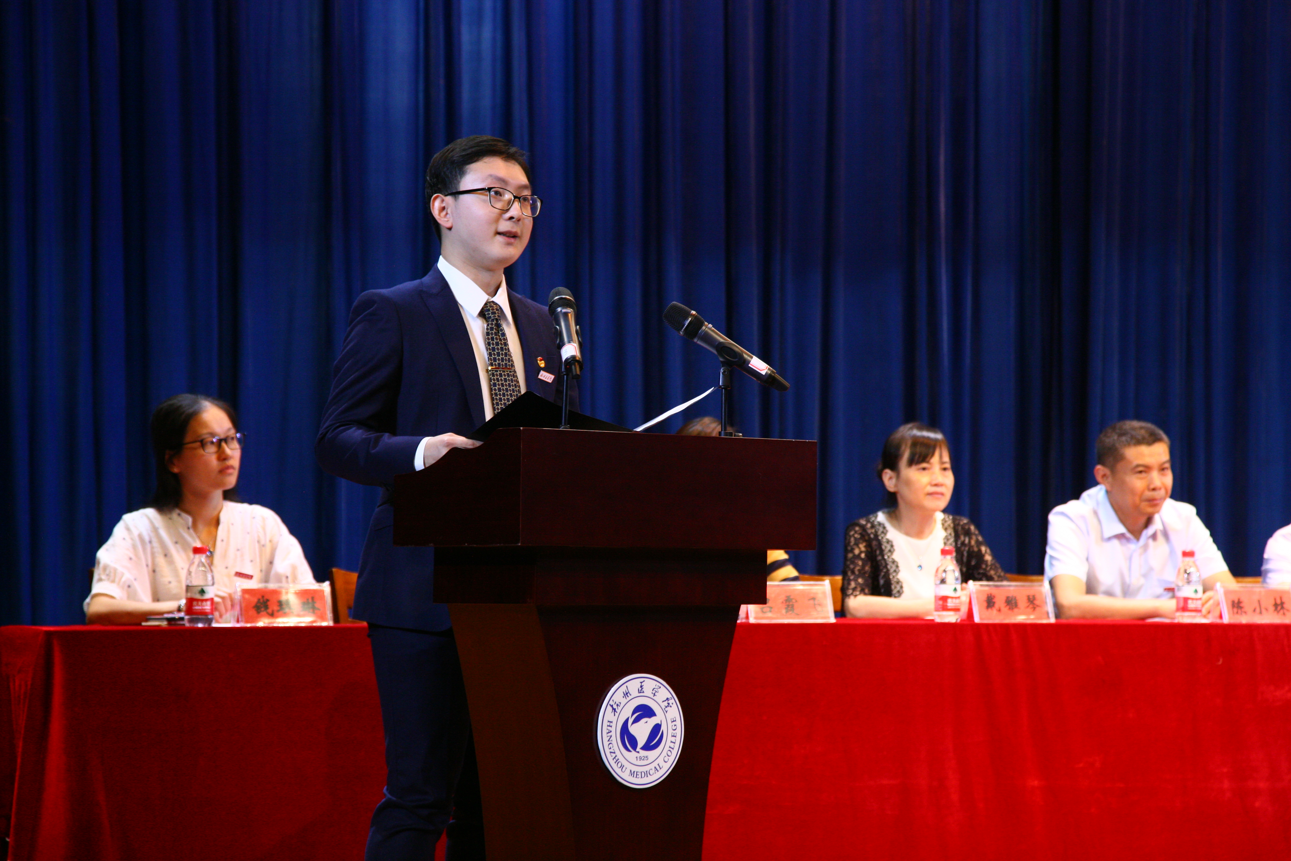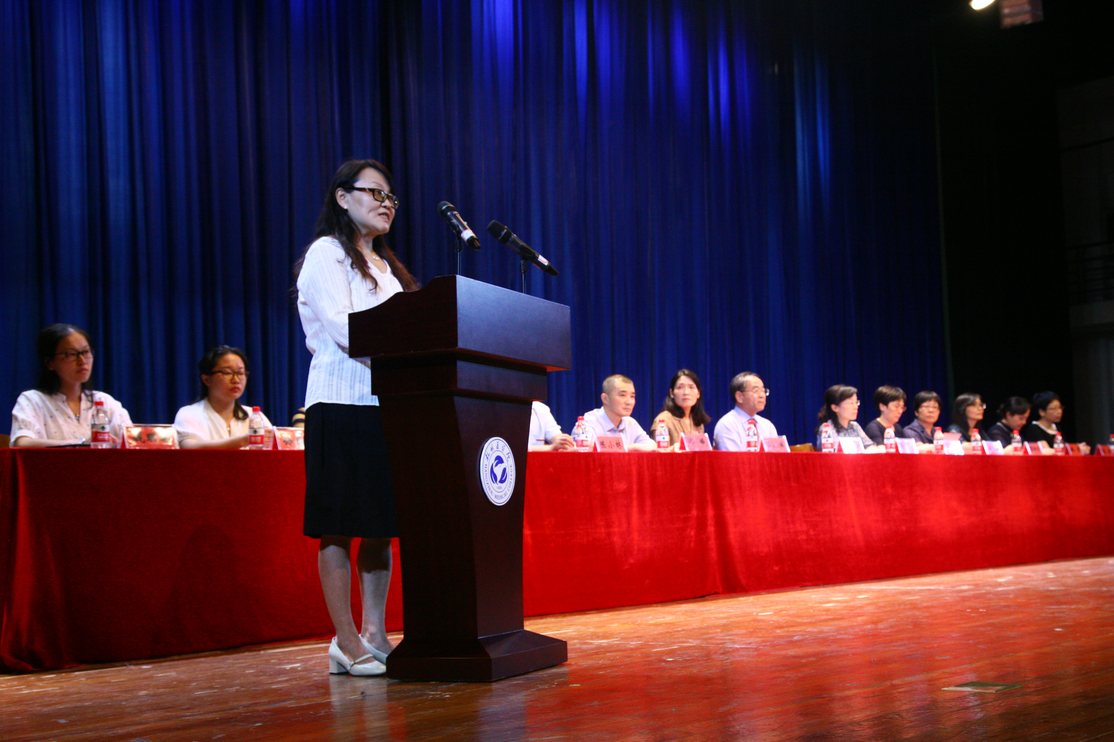 学校首届“卓越教学奖”获得者、基础医学与法医学院仇容教授代表教师发言,她对新生们提出了几点建议:一是要心怀大爱,无私奉献。作为一名医学生,首先要珍爱生命,爱己更要爱人,才能在救死扶伤的工作中奉献爱。二是要勤奋学习,开拓创新。她认为没有求实创新的精神和孜孜不倦的学习态度,没有广博的医学专业基础和熟练的医疗临床技能,就难以真正造就为一名良医。三是要强健体魄,砥砺意志。她说从一点一滴做起,不断磨练意志,从每一次失败中总结经验,从每一次成功中攫取动力,培养自己良好的业务素质和过硬的思想品质。